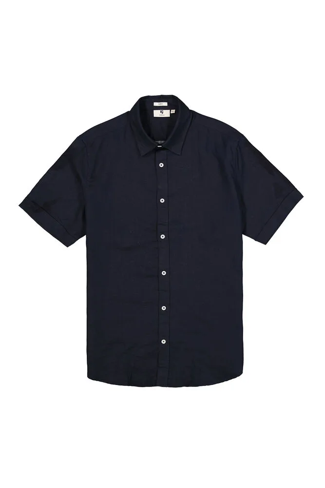 Overhemd van een katoen en linnenmix. Dit overhemd heeft een kraagje, korte mouwen, een knoopsluiting en een regular fit. Dit item is gemaakt van 55% linnen en 45% katoen.
