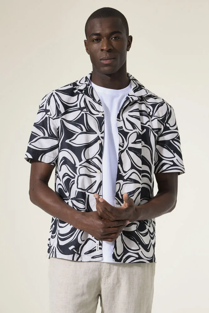 Overhemd met een opvallende allover print. Dit overhemd heeft een knoopsluiting, korte mouwen en een relaxed fit. Dit item is gemaakt van 70% katoen en 30% linnen, wat zorgt voor een comfortabele en ademende draagervaring. Better Cotton is een initiatief dat zich wereldwijd inzet voor betere omstandigheden in de katoenindustrie.