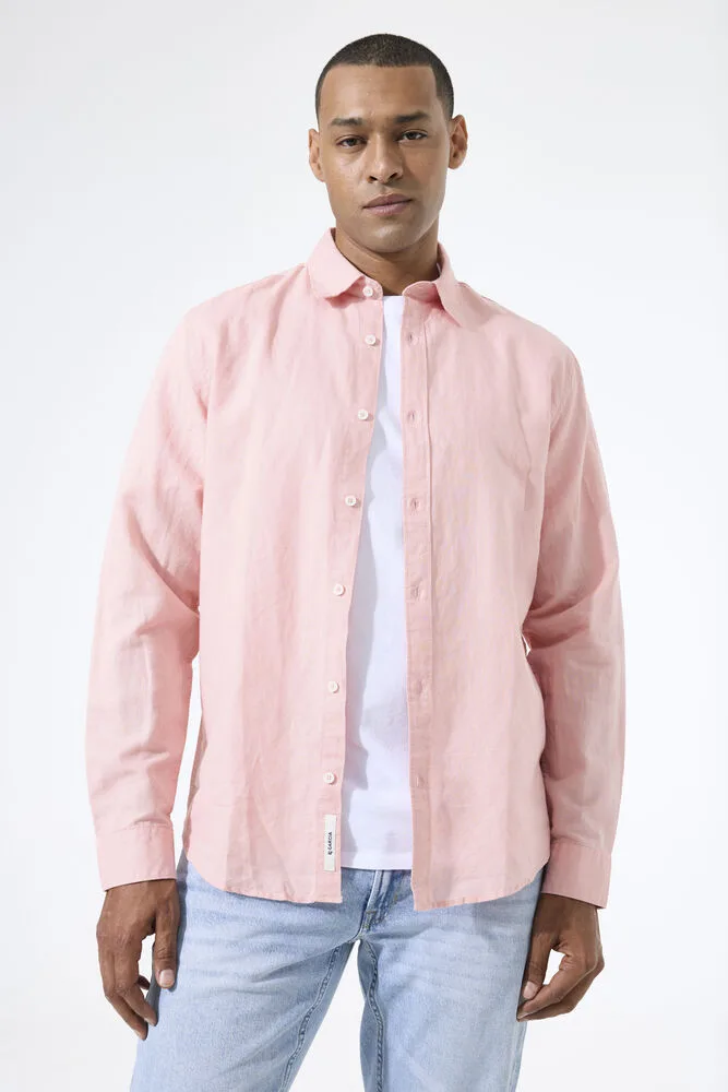 Overhemd van een katoen en linnenmix. Dit overhemd heeft een kraagje, lange mouwen, een knoopsluiting en een regular fit. Dit item is gemaakt van 55% linnen en 45% katoen.