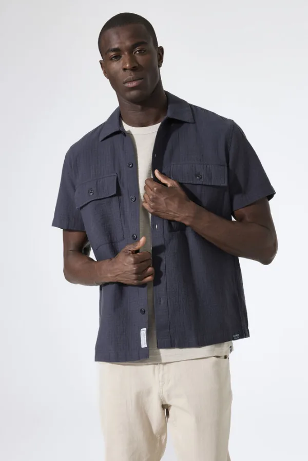 Overshirt van seersucker stof met borstzakken. Dit overshirt heeft een knoopsluiting, korte mouwen en een relaxed fit. Dit item is gemaakt van 100% katoen. Better Cotton is een initiatief dat zich wereldwijd inzet voor betere omstandigheden in de katoenindustrie.
