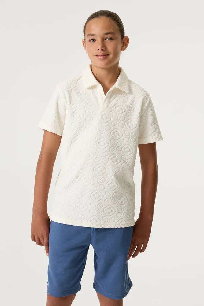 Polo met een jacquardstructuur. Deze polo heeft een klassieke kraag, korte mouwen en een regular fit. Dit item is gemaakt van 78% katoen en 22% polyester.