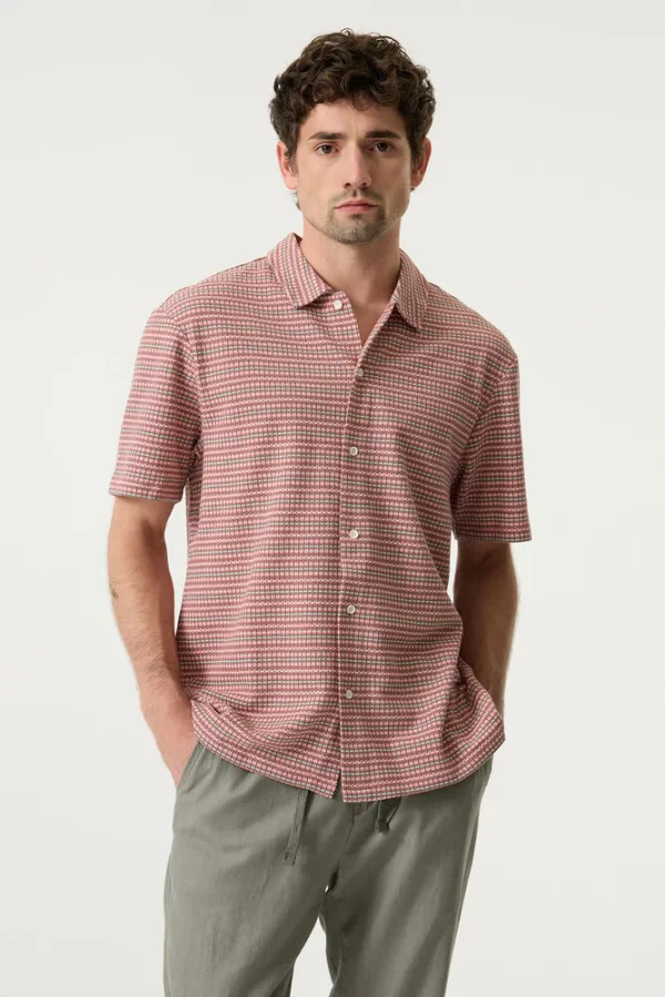 Jacquardgeweven polo met patroon. Deze polo heeft korte mouwen, een knoopsluiting en een relaxed fit. Dit item is gemaakt van 60% katoen en 40% gerecycled polyester. Better Cotton is een initiatief dat zich wereldwijd inzet voor betere omstandigheden in de katoenindustrie. Hergebruik van materialen draagt bij aan een circulaire economie.