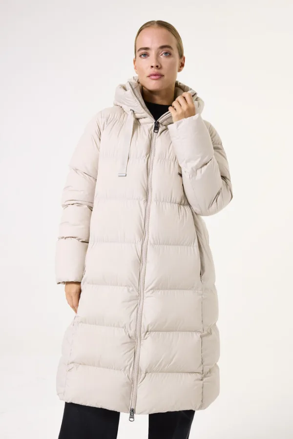 Lange gewatteerde puffer met diepe capuchon met hoge binnenkraag. Deze gewatteerde jas is gemaakt van waterafstotend materiaal en gevoerd met een zachte vulling voor comfort en warmte. Verder heeft deze jas lange mouwen, een ritssluiting, steezakken en een regular fit. De buitenlaag van deze jas is gemaakt van 100% polyester.