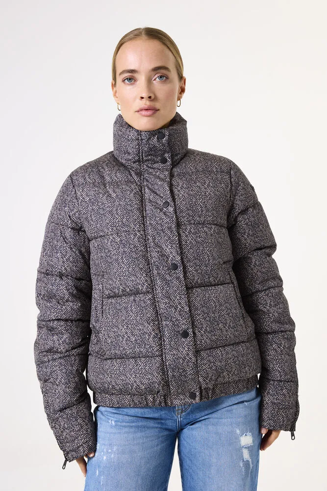 Cropped pufferjas met allover print in een comfortabele, moderne pasvorm. Deze gewatteerde jas is gemaakt van waterafstotend materiaal en gevoerd met een zachte imitatie dons vulling voor comfort en warmte. Verder heeft deze jas een royale, opstaande kraag, lange mouwen met ritsdetail, een ritssluiting met extra winddichte flap met drukknopen en elastiek aan de onderkant voor extra isolatie. De buitenlaag van deze jas is gemaakt van 100% polyester.