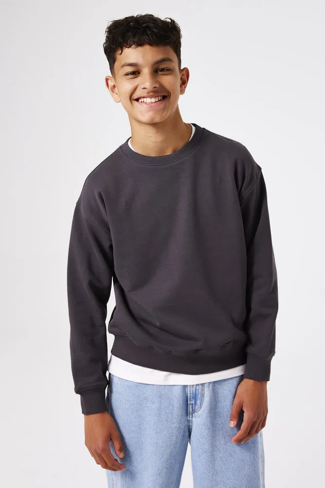 Basic oversized sweater. Deze sweater heeft lange mouwen, een ronde hals en een dropped shoulder fit. Dit item is gemaakt van 100% katoen. Better Cotton is een initiatief dat zich wereldwijd inzet voor betere omstandigheden in de katoenindustrie.