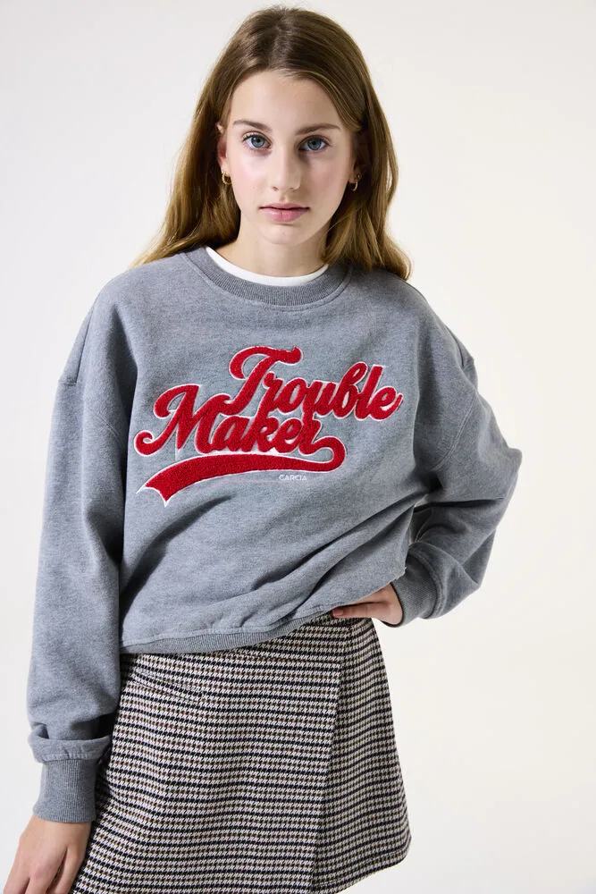 Comfortabele sweater met een opvallende tekstprint. Deze sweater heeft een ronde hals, lange mouwen en een relaxed fit, waardoor hij perfect is voor een casual look. Dit item is gemaakt van 80% katoen en 20% gerecycled polyester, wat zorgt voor een zachte en ademende stof. Dit GARCIA kledingstuk is gemaakt met gebruik van recyclede garen. Recyclede materialen worden gemaakt uit restmateriaal, wat weer wordt omgezet tot grondstof.