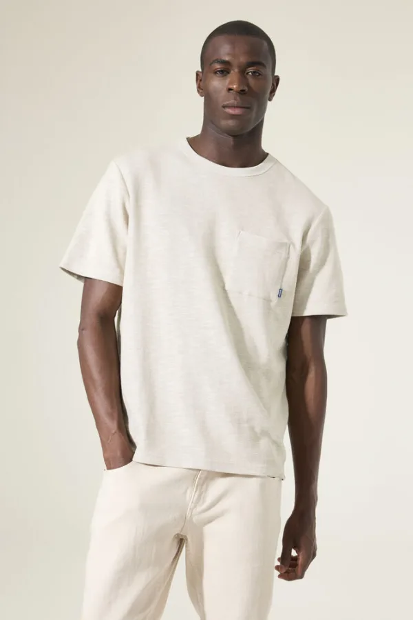 T-shirt met borstzakje. Dit T-shirt heeft een ronde hals, korte mouwen en een relaxed fit. Dit item is gemaakt van 70% katoen en 30% gerecycled katoen. Better Cotton is een initiatief dat zich wereldwijd inzet voor betere omstandigheden in de katoenindustrie. Hergebruik van materialen draagt bij aan een circulaire economie