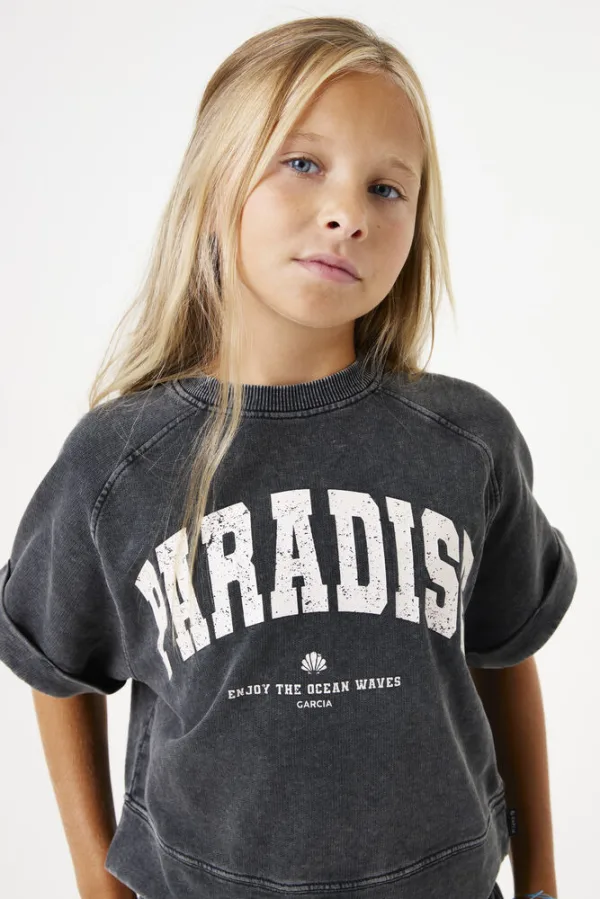 T-shirt van Garcia voor kinderen;Puur katoen;Regular fit;Ribboorden;Ronde hals;Labelprint;Ruglengte bij maat 140: 39 cm