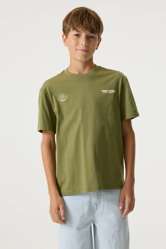 T-shirt met borst- en rugprint. Dit T-shirt heeft een ronde hals, korte mouwen en een relaxed fit. Dit item is gemaakt van 100% katoen. Better Cotton is een initiatief dat zich wereldwijd inzet voor betere omstandigheden in de katoenindustrie.