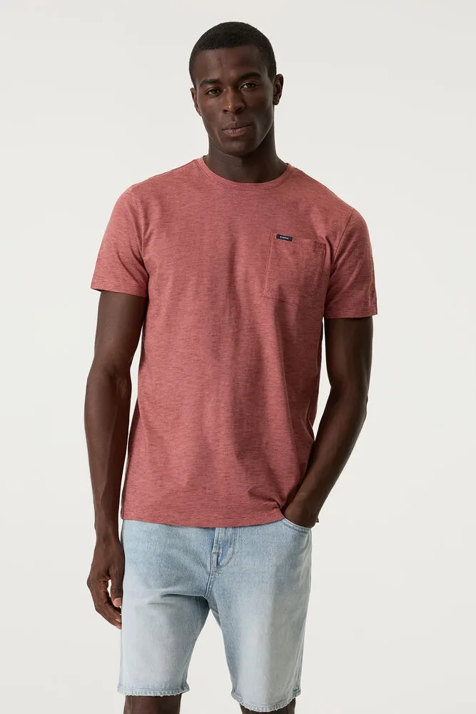 T-shirt met borstzakje. Dit T-shirt heeft korte mouwen, een ronde hals en een slim fit. Dit item is gemaakt van 100% katoen. Better Cotton is een initiatief dat zich wereldwijd inzet voor betere omstandigheden in de katoenindustrie. Hergebruik van materialen draagt bij aan een circulaire economie.