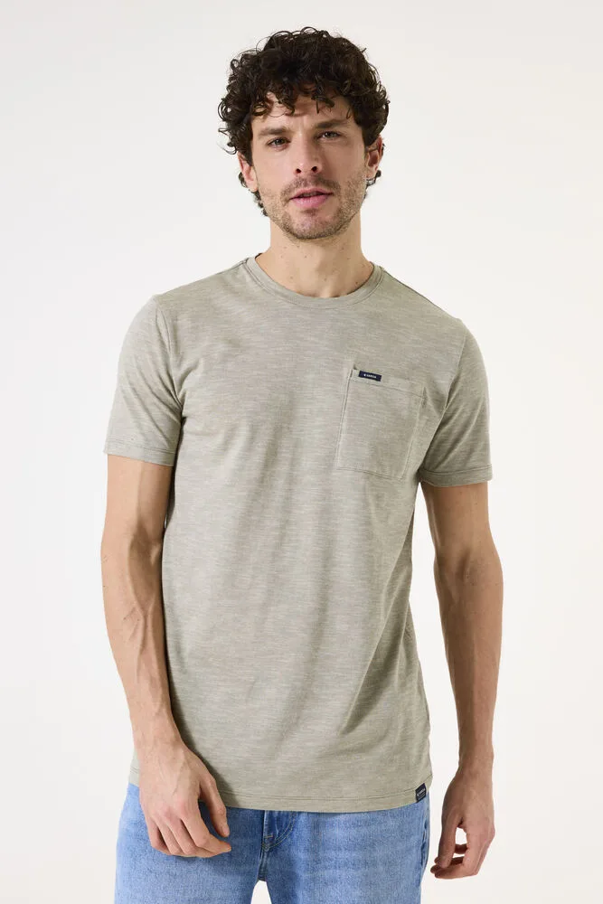 T-shirt met borstzakje. Dit T-shirt is een comfortabel, alledaags item. Het heeft een slim fit en is gemaakt van 100% katoen. Dit GARCIA kledingstuk is gemaakt met gebruik van recyclede garen. Recyclede materialen worden gemaakt uit restmateriaal, wat weer wordt omgezet tot grondstof.