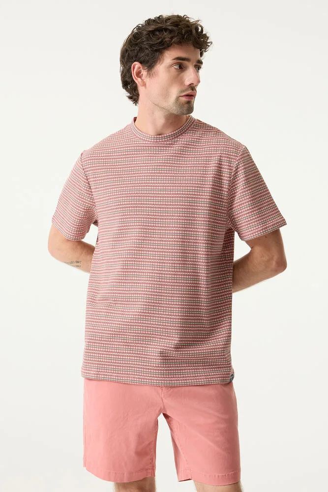 Jacquardgeweven T-shirt met patroon. Dit T-shirt heeft een ronde hals, korte mouwen en een relaxed fit. Dit item is gemaakt van 60% katoen en 40% gerecycled polyester. Better Cotton is een initiatief dat zich wereldwijd inzet voor betere omstandigheden in de katoenindustrie. Hergebruik van materialen draagt bij aan een circulaire economie.