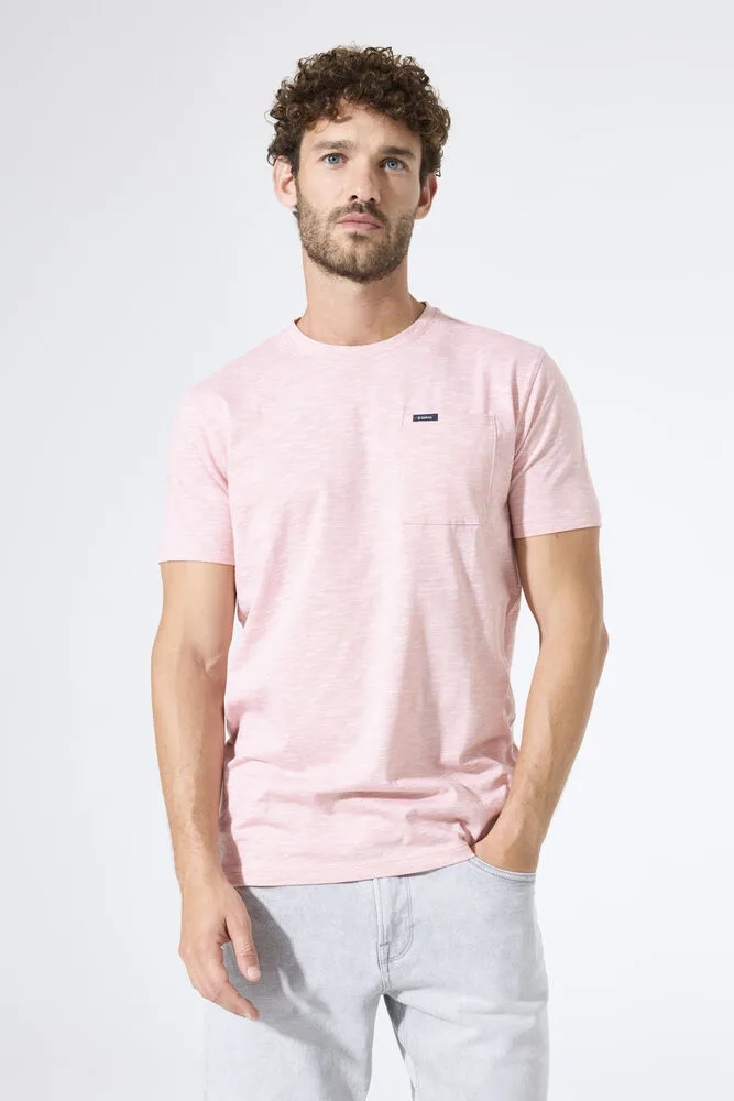 T-shirt met borstzakje. Dit T-shirt heeft korte mouwen, een ronde hals en een slim fit. Dit item is gemaakt van 100% katoen. Better Cotton is een initiatief dat zich wereldwijd inzet voor betere omstandigheden in de katoenindustrie. Hergebruik van materialen draagt bij aan een circulaire economie.
