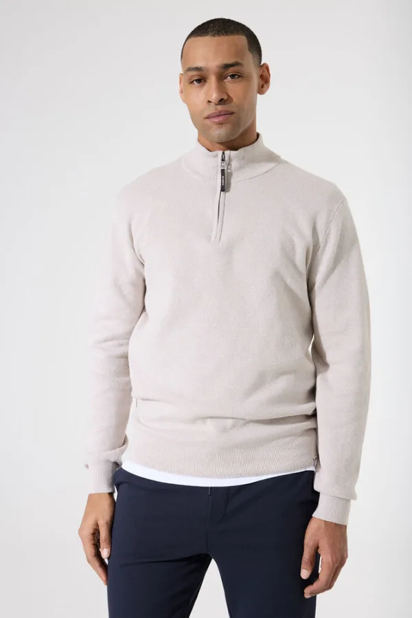 Stijlvolle trui met opstaande kraag. Deze trui heeft een opstaande kraag, lange mouwen en een regular fit. Dit item is gemaakt van 87% katoen en 13% polyester, wat zorgt voor een comfortabele en ademende pasvorm. Better Cotton is een initiatief dat zich wereldwijd inzet voor betere omstandigheden in de katoenindustrie.