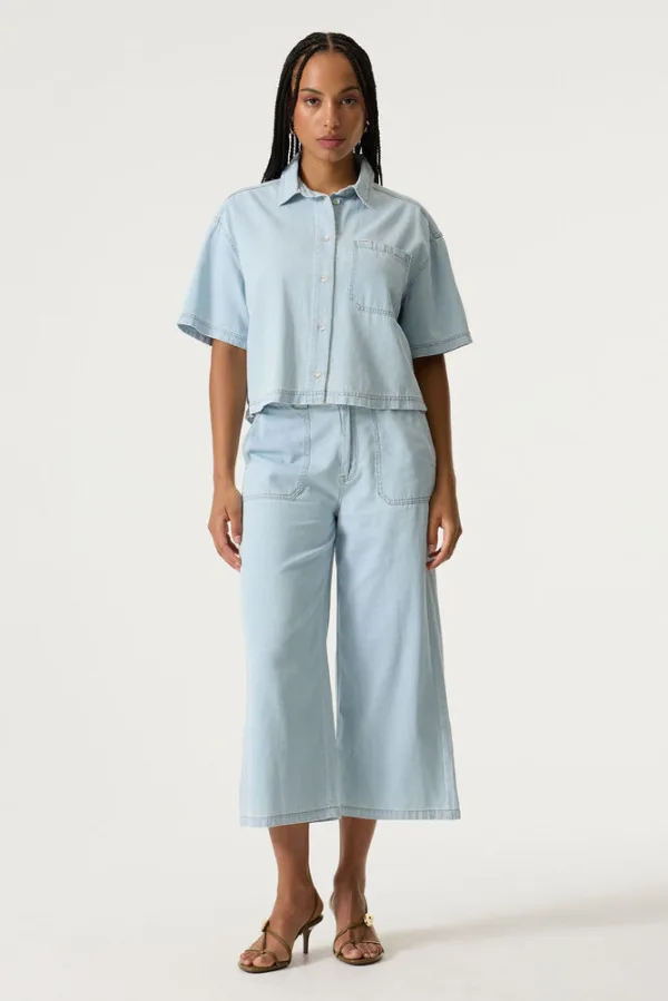 Cropped jeans met wijde broekspijpen. Deze jeans heeft een hoge taille, een knoop- en ritssluiting en een wide fit. Dit item is gemaakt van 100% katoen. Better Cotton is een initiatief dat zich wereldwijd inzet voor betere omstandigheden in de katoenindustrie.