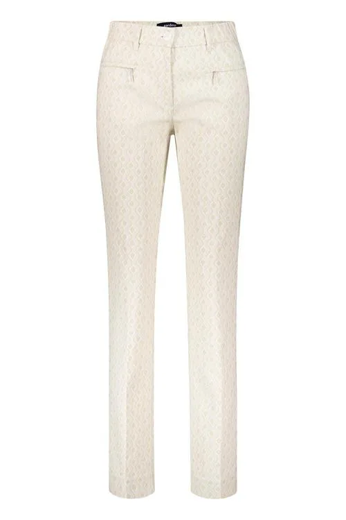 De broek is gemaakt van hoogwaardig materiaal dat soepel om het lichaam valt. Met een subtiele print en een slanke pasvorm biedt deze broek niet alleen een moderne look, maar ook ongeëvenaard comfort. De in het oog springende tailleband en verborgen ritssluiting zorgen voor een strakke afwerking. Gardeur staat bekend om zijn oog voor detail en vakmanschap, wat duidelijk zichtbaar is in dit ontwerp.