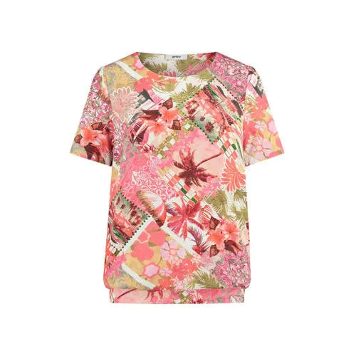 Laat je zomergarderobe stralen met dit gardeur dames T-shirt in koraalrood met all over print. De frisse kleurcombinatie en het vrouwelijke silhouet maken het een opvallend, maar toch makkelijk te combineren bovenstuk voor alledaags gebruik. Gemaakt van een zachte mix met viscose sluit dit shirt soepel aan op je lichaam en beweegt het comfortabel met je mee.Comfortabele pasvorm met zomerse details Koraalrode basiskleur met meerkleurige all over print voor een levendige uitstraling Middel lange lengte die mooi op de heup valt en prettig valt over een broek of rok Korte, rechte mouwen voor luchtig draagcomfort op warme dagen Ronde hals die het decolleté subtiel accentueert zonder te diep te vallen Zachte, soepele stof met 95% viscose en 5% elasthan voor lichte stretch Geweven look voor een verzorgde, nette afwerking Onderdeel van de 'Feminine' collectie, ideaal voor een vrouwelijk en modern silhouetVeelzijdig shirt voor zonnige dagenDit T-shirt is gemaakt voor het zomerseizoen en past goed bij lichte denim, een nette chino of een zomerse rok. De all over print geeft direct karakter aan een eenvoudige outfit, terwijl de middel lengte zorgt voor een verzorgd geheel, zowel los gedragen als in de broek gestopt.Gardeur: aandacht voor pasvorm en stijlGardeur staat bekend om doordachte pasvormen en tijdloze ontwerpen. De collecties zijn ontworpen met oog voor detail, zodat elk item prettig zit en er verzorgd uitziet. Met dit T-shirt kies je voor een betrouwbaar merk dat modieuze items maakt die je vaak en lang wilt dragen.Een zomers shirt dat kleur en comfort op een ontspannen manier samenbrengt in jouw dagelijkse outfits.