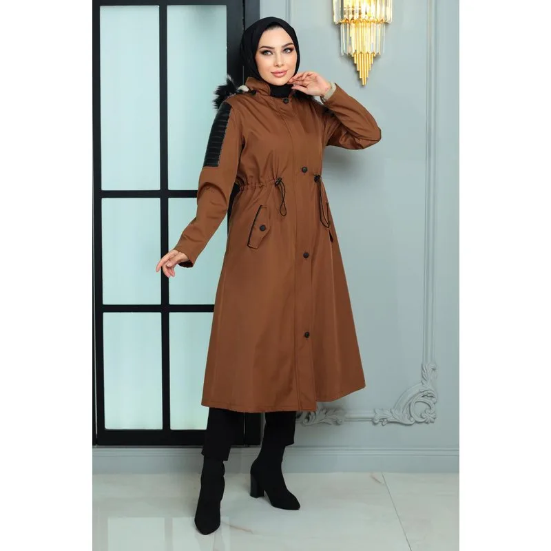 Stofkenmerk: Gemaakt van Bondit-stof. Productkenmerk: Nieuwe seizoensmode-hijabproduct. Voering van bont. Voorzien van een ritssluiting aan de voorkant. Zak beschikbaar. Kap is afneembaar. Strik bij de taille. De productkleur kan variëren door conceptfoto's. Model draagt maat 38. Maat 38 Jassenmaten: Productlengte: 116 cm - Borst: 100 cm - Taille: 96 cm - Heupen: 110 cm Lichaamsmaten nemen toe met 3 of 4 cm. (Productlengte verandert niet)