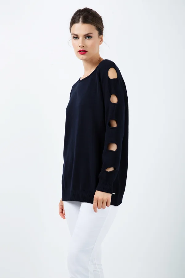 Gatdetail Losse Blauwe Trui Prijzen