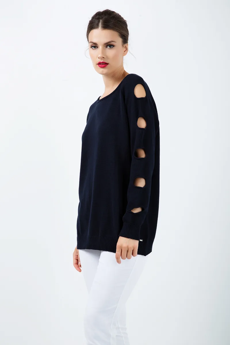 Gatdetail Losse Blauwe Trui