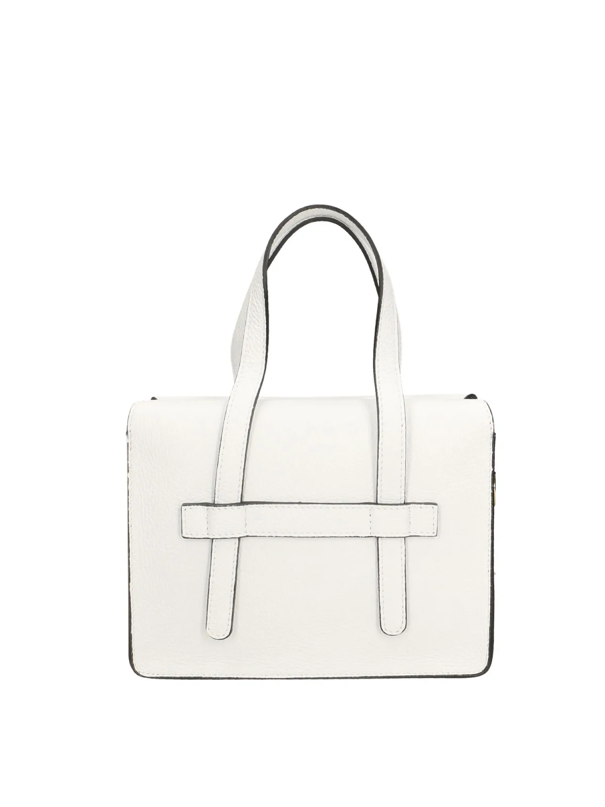 Dameshandtas met magnetische knoopsluiting. één met binnenzakken met ritssluiting. afwezige externe zakken. verstelbare en afneembare lederen schouderband. met leren handvat. een binnencompartiment. extern materiaal. gevoerd met 70% katoen - 30% polyester binnenkant. Afmetingen: 25x20x8 cm. Gemaakt in Italië