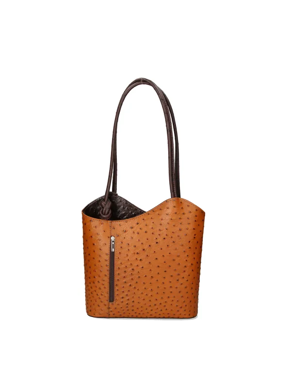 Damestas met handvatten en om te bouwen tot rugzak gemaakt van echt struisvogelleer. Italiaans handgemaakt product. Gemaakt in Italië