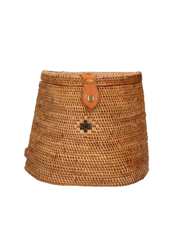 Rotan rugzak, handgemaakt, met leren sluiting. Italiaans handgemaakt product. Gemaakt in Italië.