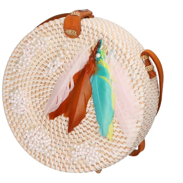 Design: Rits zak; Type sluiting: Drukknoop; Materiaal: Stro materiaal; Extra's: Verstelbare bandjes; Hengsellengte: Lange schouderriemen