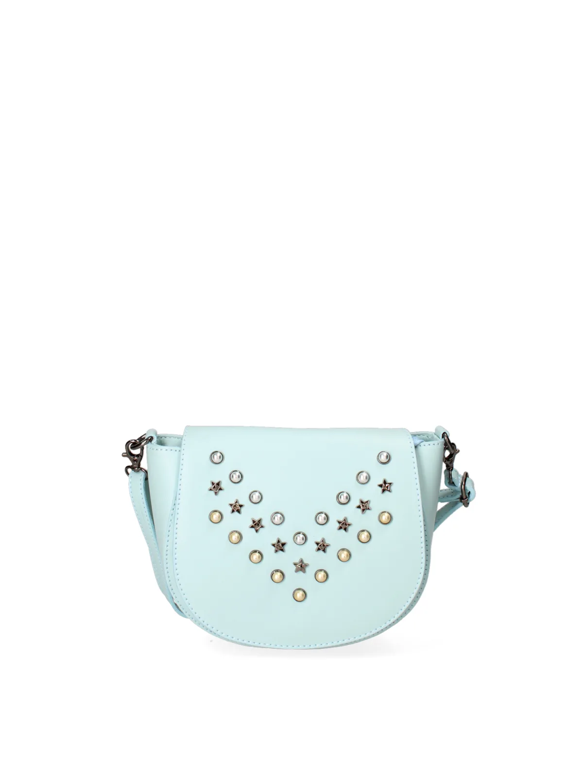 Crossbodytas voor dames met magnetische knoopsluiting. één met binnenzakken met ritssluiting. afwezige externe zakken. verstelbare en afneembare lederen schouderband. ontbrekend handvat. een binnencompartiment. extern materiaal. gevoerd met 70% katoen - 30% polyester binnenkant. Afmetingen: 20x17x7 cm. Gemaakt in Italië