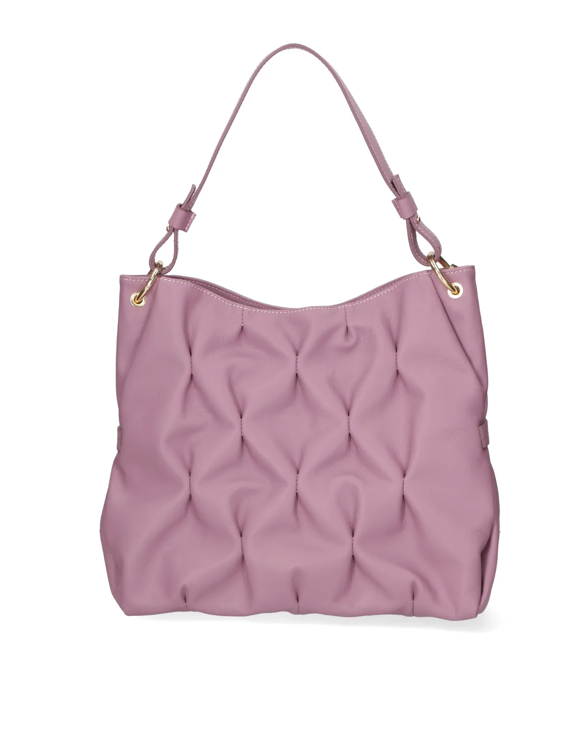 Damesschoudertas met ritssluiting. één met ritssluiting en twee open binnenzakken. twee voorste met externe zakken met magnetische knopen. verstelbare en afneembare lederen schouderband. met leren handvat. twee binnenvakken. extern materiaal. gevoerd met 70% katoen - 30% polyester binnenkant. Afmetingen: 34x28x12 cm. Gemaakt in Italië