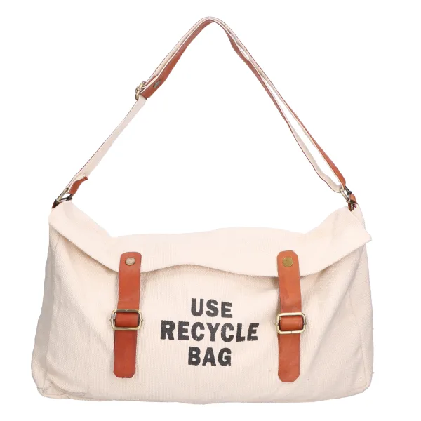 Echt leer + canvas schoudertas voor dames. Product volledig gemaakt van hergebruikte en/of gerecyclede materialen.