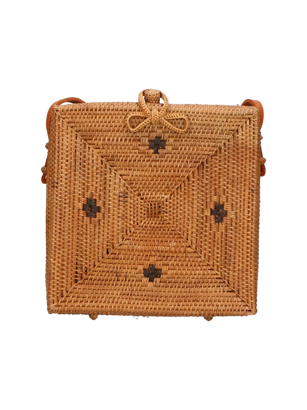 Vierkante handgemaakte rotan schoudertas met leren sluiting. Italiaans handgemaakt product. Gemaakt in Italië.