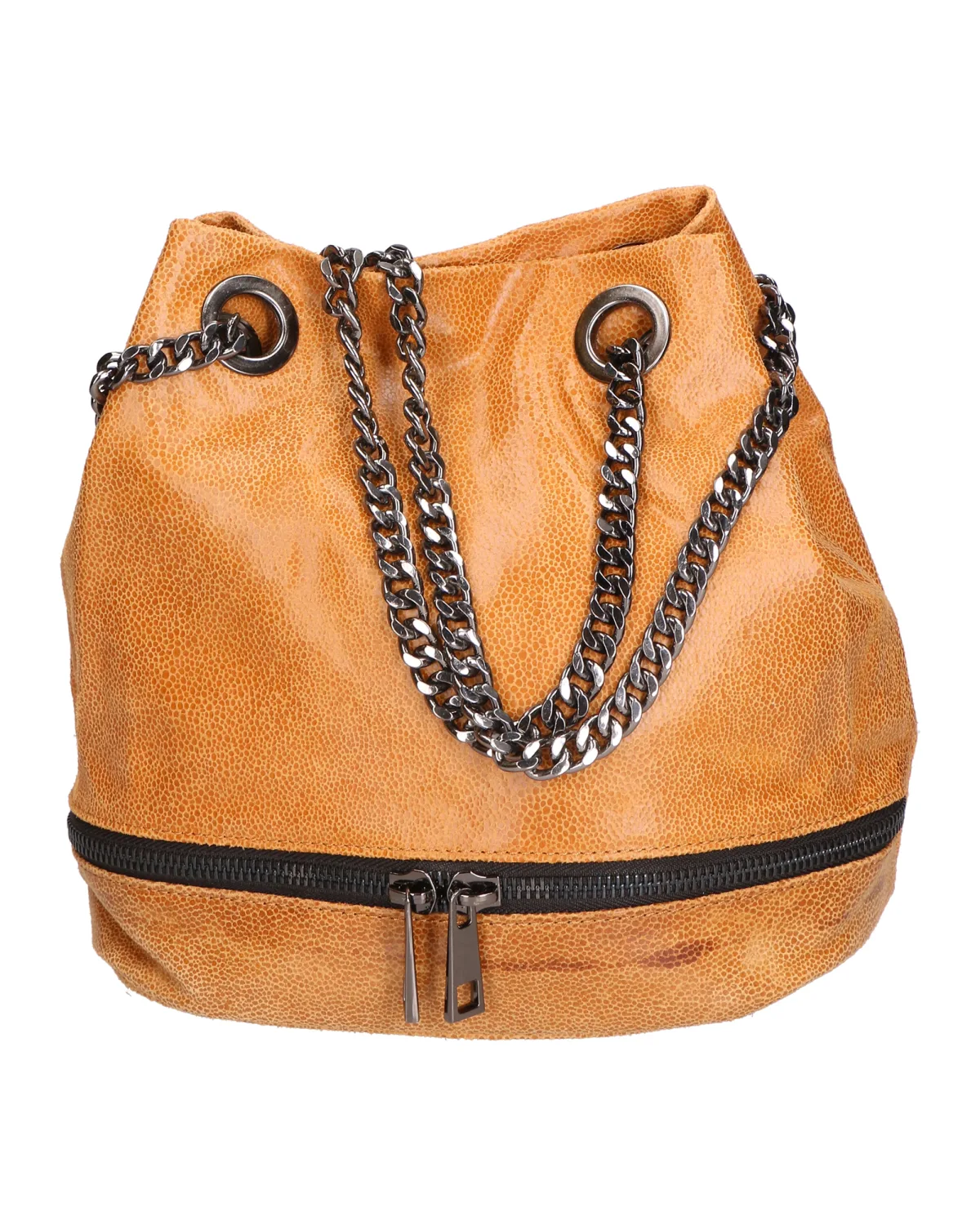 Gewatteerde leren bucketbag met ketting. Gemaakt in Italië.