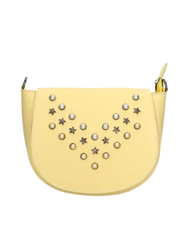 Crossbodytas voor dames met magnetische knoopsluiting. één met binnenzakken met ritssluiting. afwezige externe zakken. verstelbare en afneembare lederen schouderband. ontbrekend handvat. een binnencompartiment. extern materiaal. gevoerd met 70% katoen - 30% polyester binnenkant. Afmetingen: 20x17x7 cm. Gemaakt in Italië