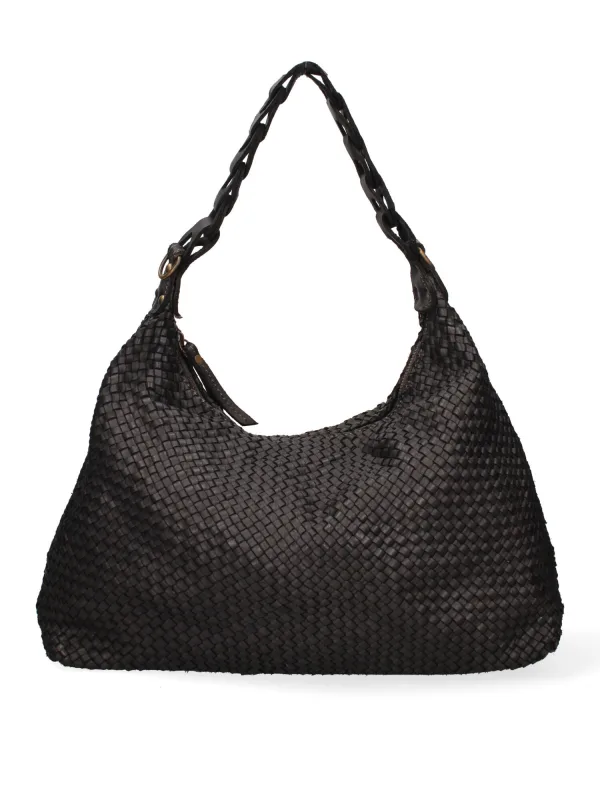 Damesschoudertas met ritssluiting. één met ritssluiting en één open binnenzak. afwezige externe zakken. verstelbare en afneembare schouderband van eco-leer. met leren handvat. een binnencompartiment. extern materiaal. gevoerd met 70% katoen - 30% polyester binnenkant. Afmetingen: 46x33x15 cm. Modeproduct
