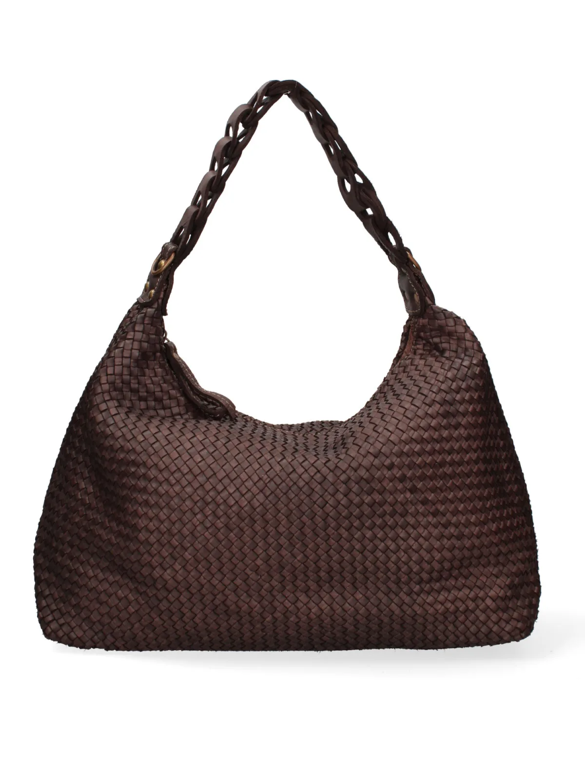 Damesschoudertas met ritssluiting. één met ritssluiting en één open binnenzak. afwezige externe zakken. verstelbare en afneembare schouderband van eco-leer. met leren handvat. een binnencompartiment. extern materiaal. gevoerd met 70% katoen - 30% polyester binnenkant. Afmetingen: 46x33x15 cm. Modeproduct