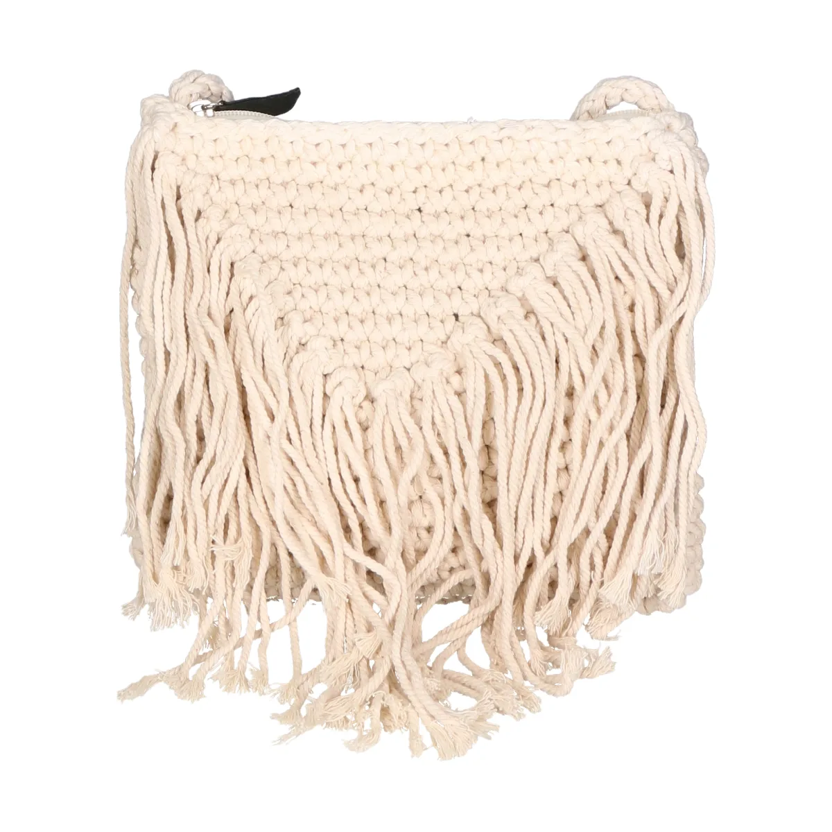 Handgeweven katoenen schoudertas met franjes, 100% natuurlijk en milieuvriendelijk product. Elk product kan met de hand worden samengesteld uit natuurlijke en unieke materialen zoals schelpen en veren en is anders dan de
