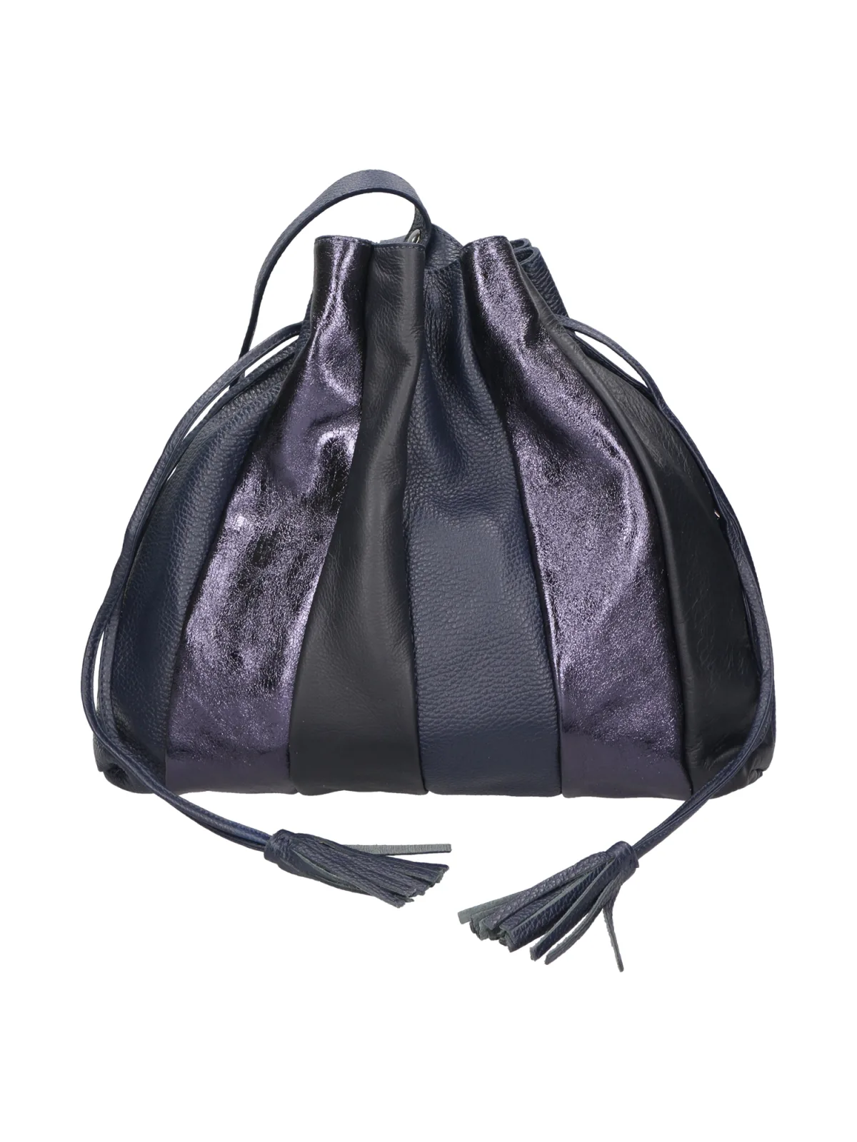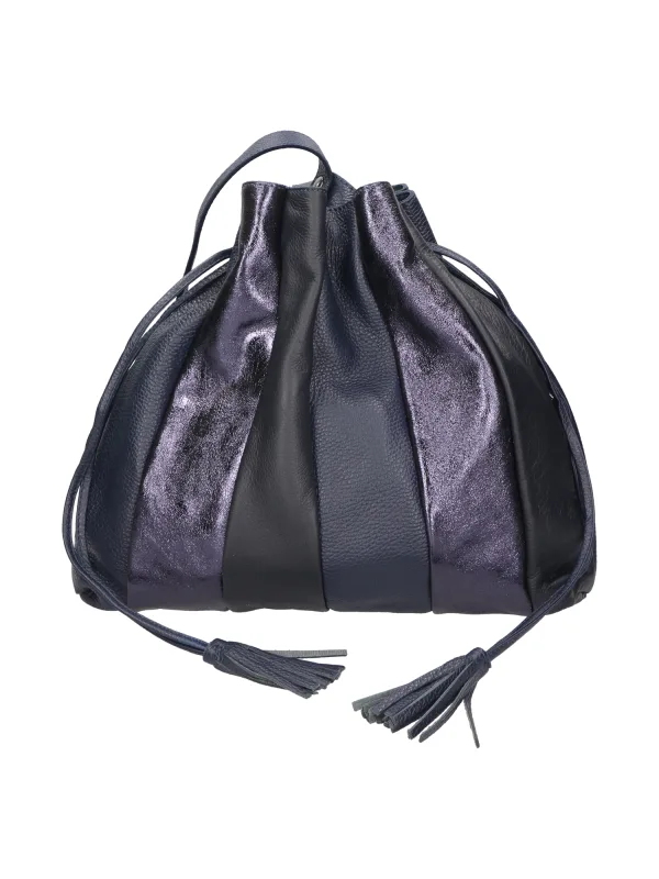 Zachte schoudertas voor dames met enkel compartiment. Italiaans ambachtelijk product gemaakt van drie verschillende leersoorten: dollar, sauvage en laminaat. Gemaakt in Italië