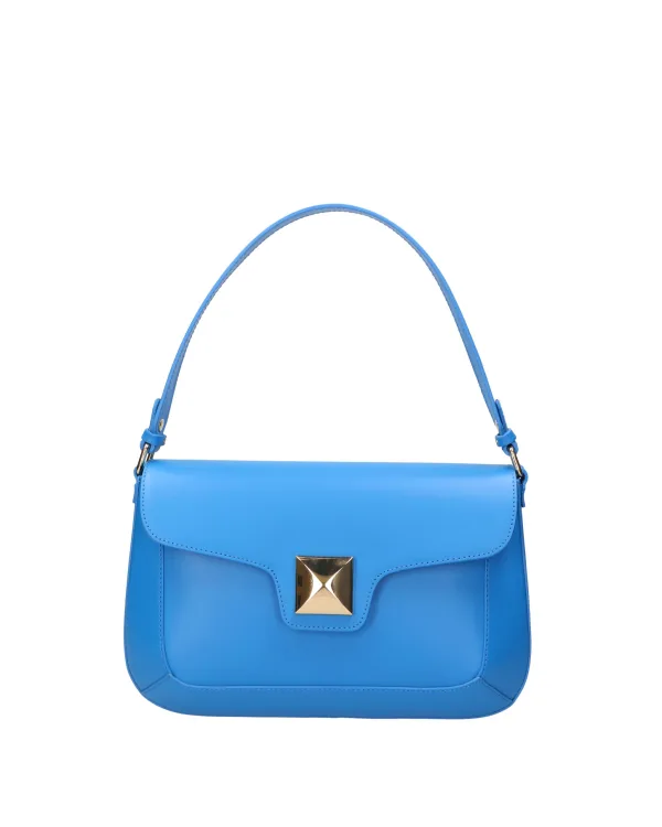 Damesschoudertas met magnetische knoopsluiting. één met binnenzakken met ritssluiting. afwezige externe zakken. verstelbare en afneembare lederen schouderband. met leren handvat. een binnencompartiment. extern materiaal. gevoerd met 70% katoen - 30% polyester binnenkant. Afmetingen: 31x19x5 cm. Gemaakt in Italië