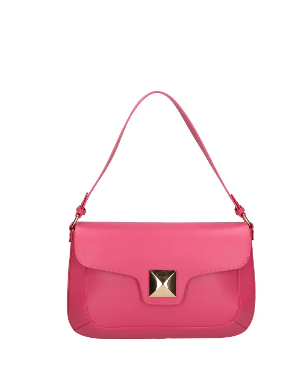 Damesschoudertas met magnetische knoopsluiting. één met binnenzakken met ritssluiting. afwezige externe zakken. verstelbare en afneembare lederen schouderband. met leren handvat. een binnencompartiment. extern materiaal. gevoerd met 70% katoen - 30% polyester binnenkant. Afmetingen: 31x19x5 cm. Gemaakt in Italië