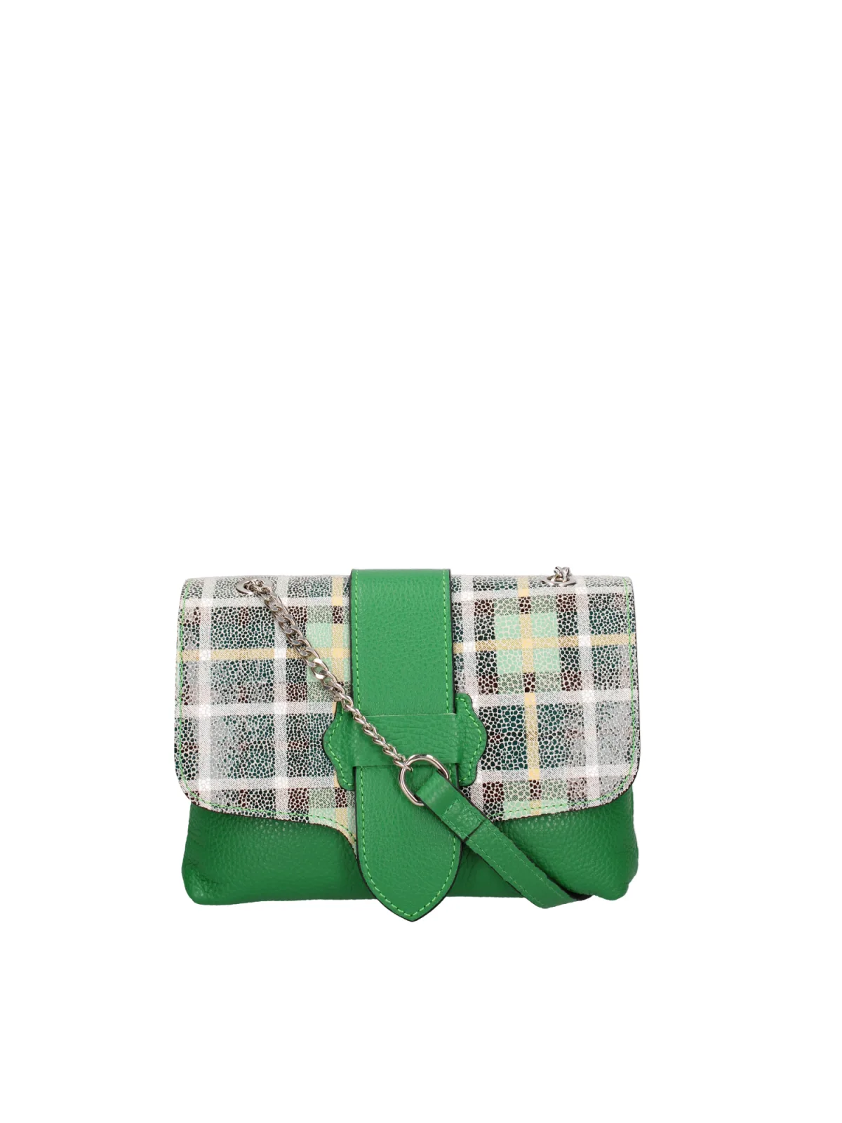 Damesschoudertas van Burberry-stijl geruit leer met klep. Italiaans handgemaakt product. Gemaakt in Italië.