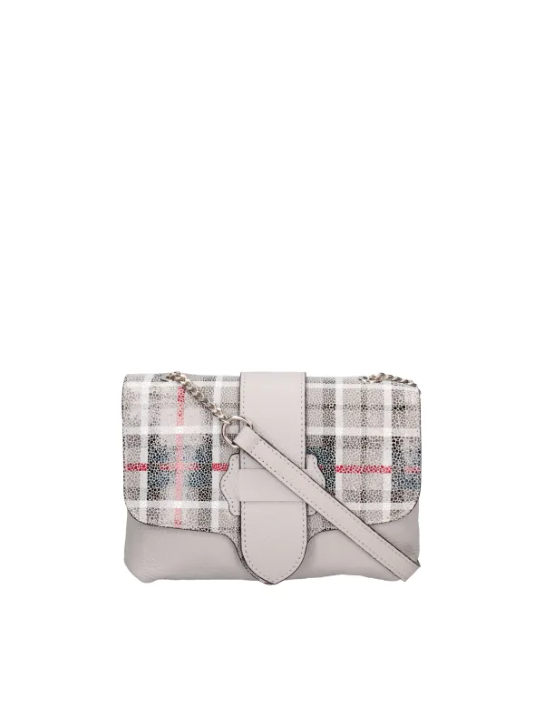 Geruite leren damesschoudertas met klep in Burberry-stijl. Italiaans handgemaakt product. Gemaakt in Italië.
