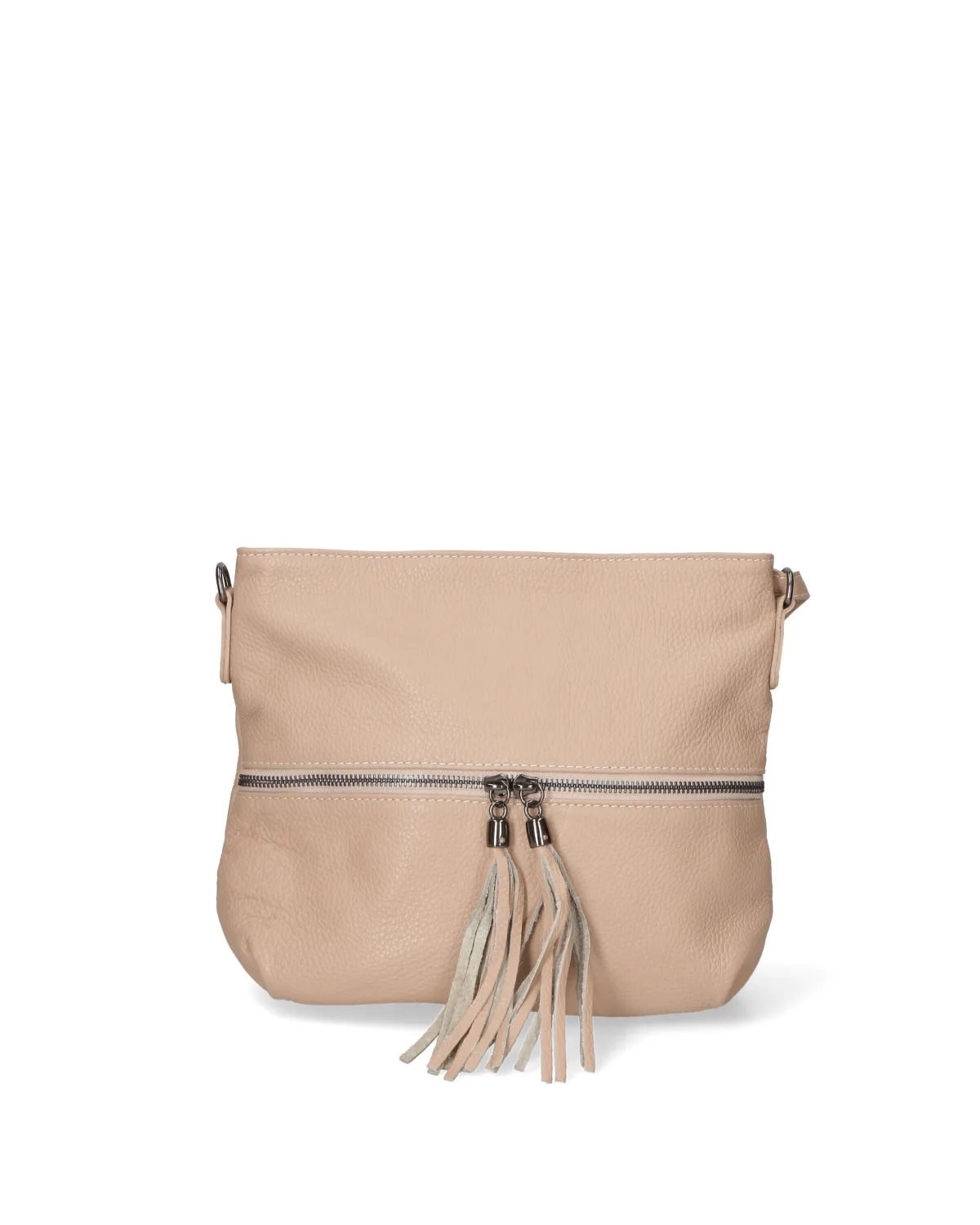 Crossbodytas voor dames met ritssluiting. één met ritssluiting en één open binnenzak. één voorkant met ritssluiting en één achterkant met externe zakken met rits. verstelbaar in lederen schouderband. ontbrekend handvat. één binnenvak. extern materiaal. gevoerd met 70% katoen - 30% polyester binnenkant. Afmetingen: 32x24x10 cm. Gemaakt in Italië