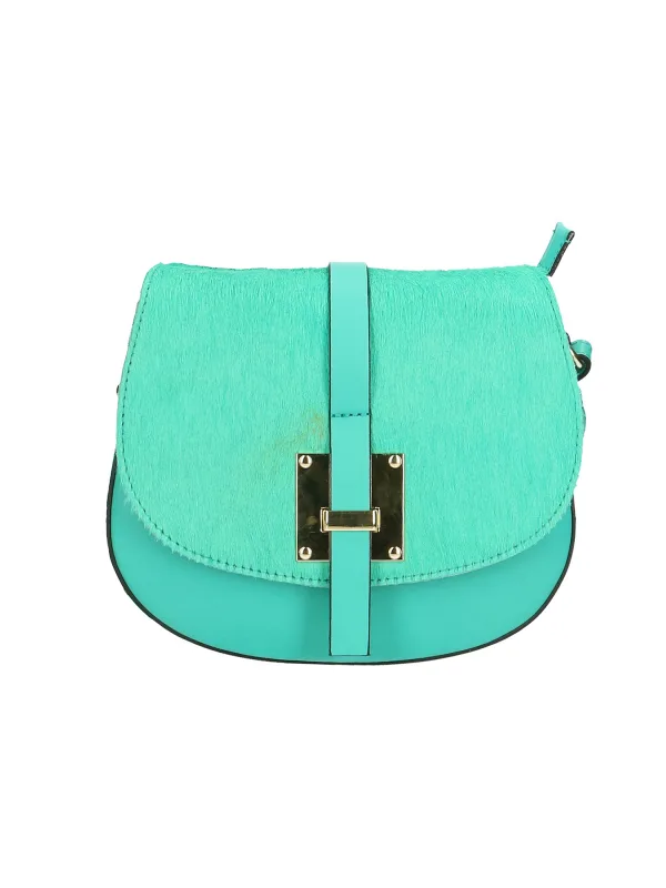 Schoudertas voor dames met één compartiment en afneembare schouderband. Italiaans handgemaakt product gemaakt van echt glad leer en kalfshaarflap. Gemaakt in Italië