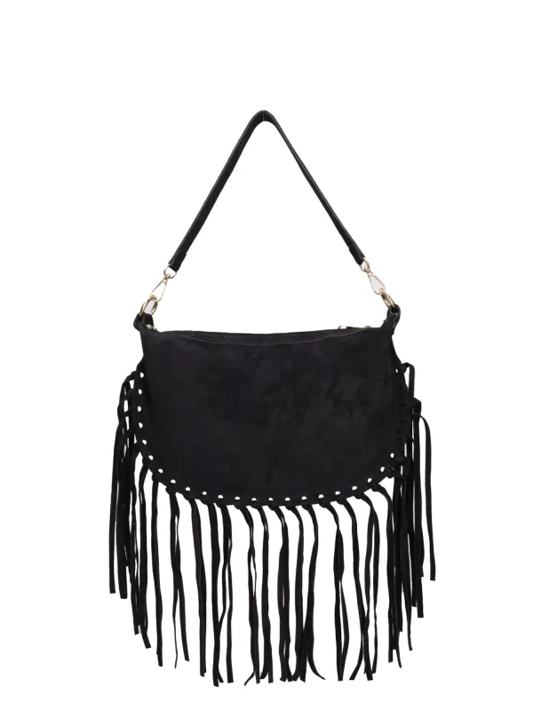 Design: Afneembare banden, Ritsvak binnen; Type sluiting: Veiligheidshaak; Materiaal: Leer; Motief: Effen; Materiaal: Suède; Extra's: Franjes; Hengsellengte: Lange schouderriemen, Korte schouderriemen