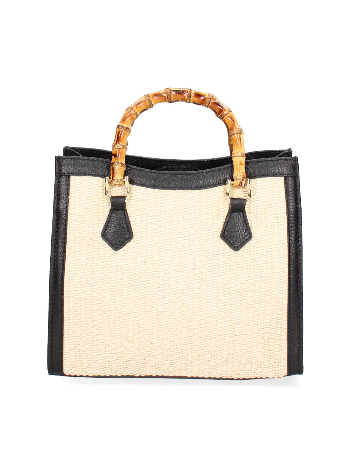 Handgemaakte damestas van stro met enkel compartiment en leren schouderband. Italiaans ambachtelijk product gemaakt van echt leer en stro. Gemaakt in Italië.