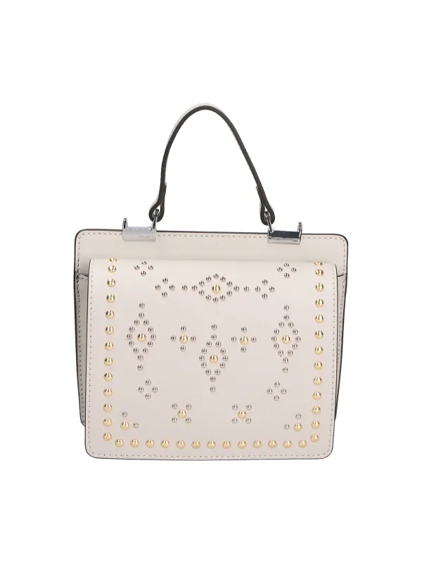 Dameshandtas met twee compartimenten, handvat en afneembare, verstelbare schouderband, voorflap met platte klinknagels op het hoofd. Italiaans handgemaakt product gemaakt van echt Ruga-leer. Gemaakt in Italië