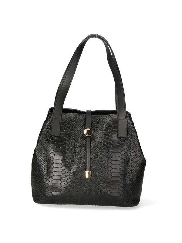 Dameshandtas met één compartiment. Italiaans handgemaakt product van echt leer met slangenreliëf. Gemaakt in Italië