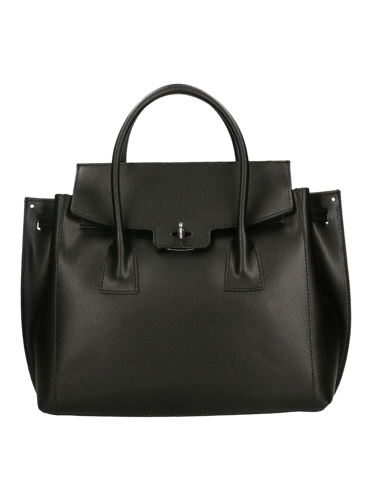 Leren dameshandtas met schommelsluiting met swirl. Voorzien van afneembare schouderband. Italiaans handgemaakt product. Gemaakt in Italië.