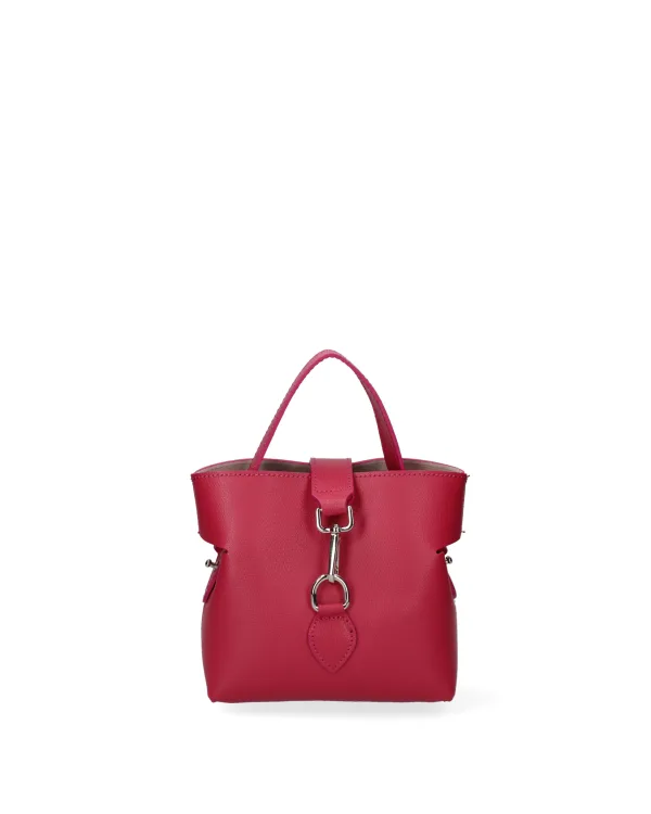 Dameshandtas met karabijnhaaksluiting. Binnenzakken met clutch. afwezige externe zakken. verstelbare en afneembare lederen schouderband. Leren handvat. één binnenvakken. Handtas|Dames extern materiaalongevoerde binnenkant. Afmetingen: 18x17x9 cm. Gemaakt in Italië
